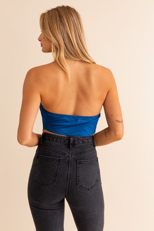 Elevate your wardrobe with the Heartthrob Crop Top, a chic and versatile piece perfect for day-to-night styling. Made from premium, silky blue fabric, this women's crop top offers a delicate yet comfortable feel, ensuring you stay stylish and confident.